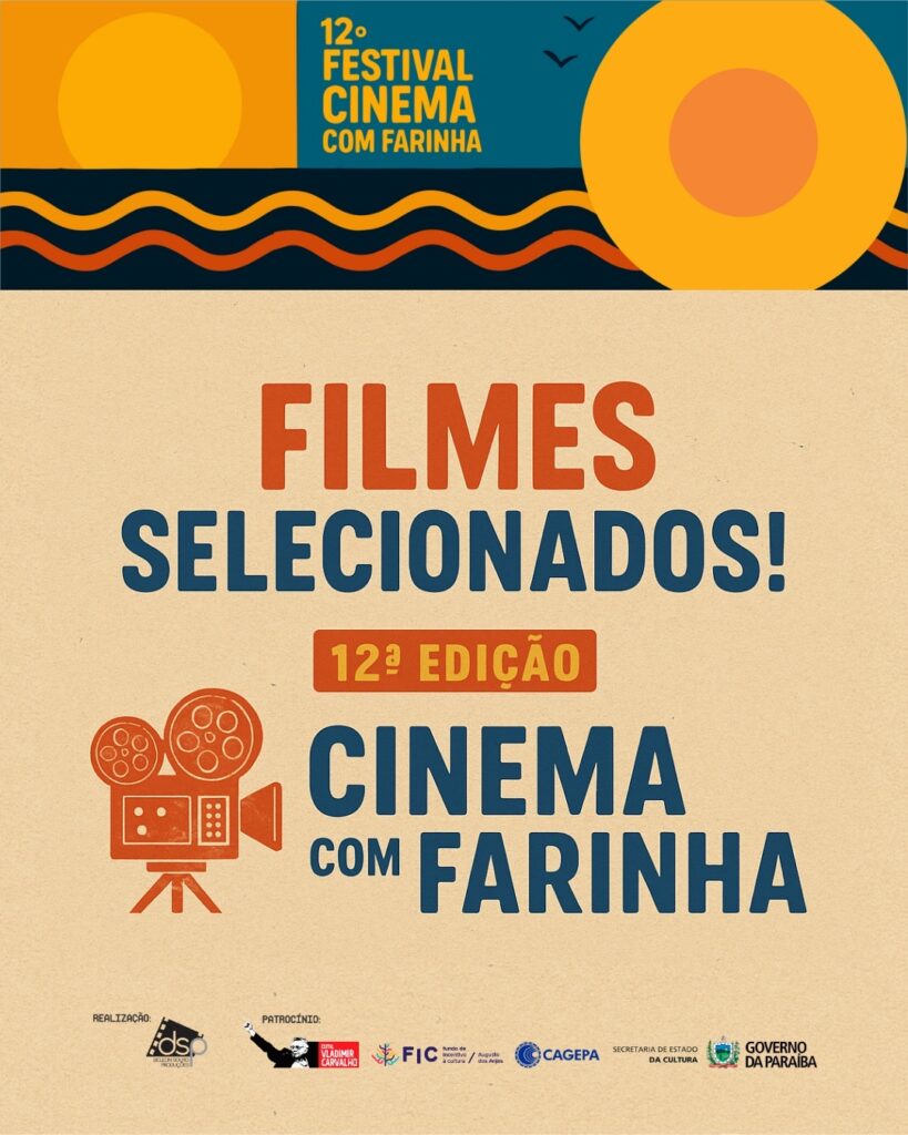 O Festival Cinema com Farinha, realizado em Patos-PB, divulgou os filmes selecionados para sua 12ª edição. O evento exibirá mostras competitivas e contará com lançamentos de filmes, debates, oficinas e apresentações culturais. A programação é gratuita, e acontecerá de 27 a 30 de agosto, no Patos Multiplex (Patos Shopping).