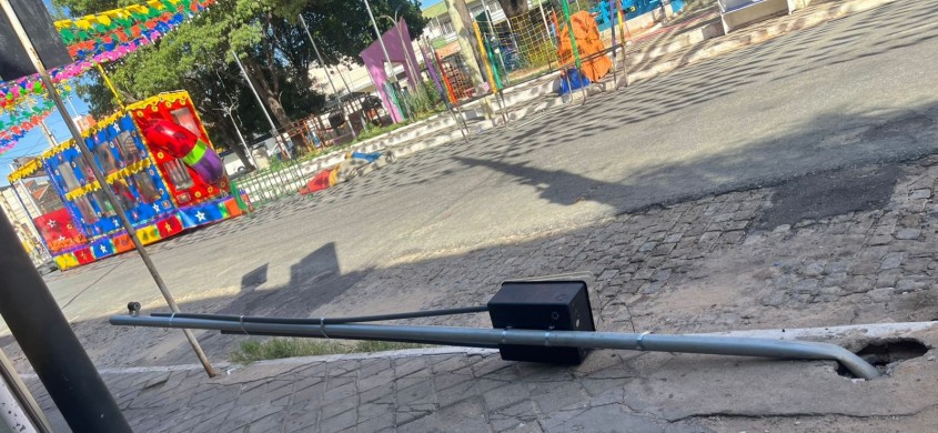 Ao passo que a cidade vai se vestindo de São João, muitos são os criminosos que preferem destruir o patrimônio e a nossa cultura. Na noite deste sábado (10), criminosos quebraram o padrão de energia de um poste que servia para conduzir energia elétrica para o Terrerinho do Forró que começa a ser erguido no largo da Praça Getúlio Vargas no Centro de Patos-PB.