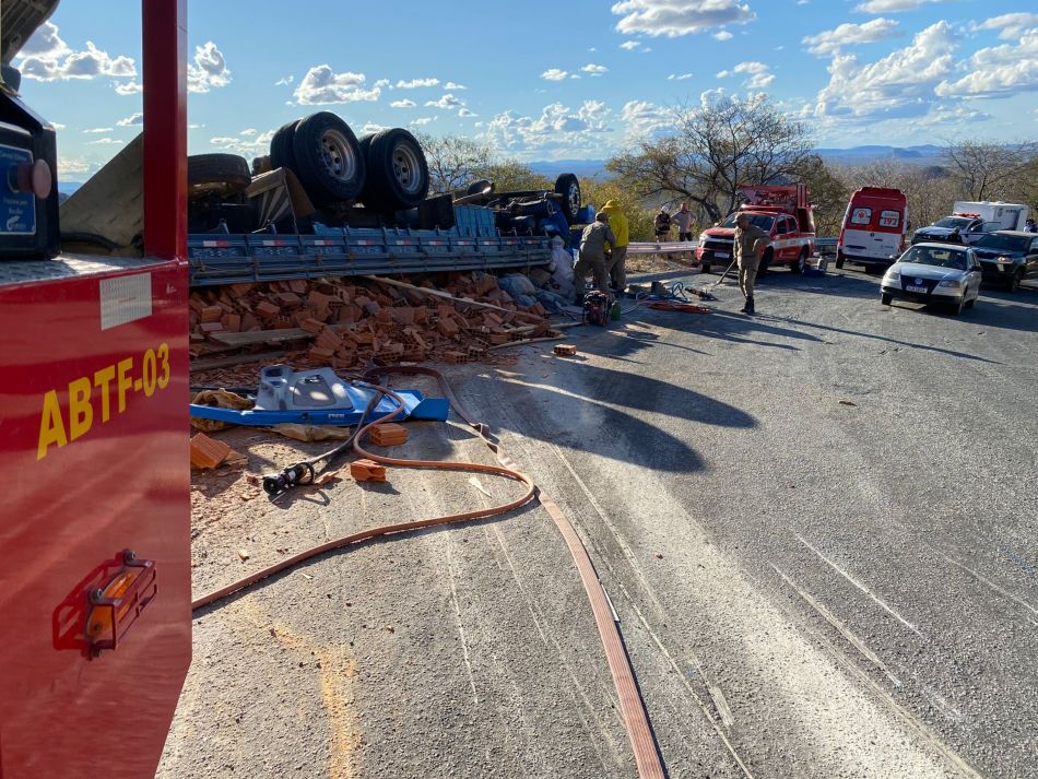 Caminhão capota e pai e filho morrem esmagados pela cabine em sinistro na Serra do Teixeira