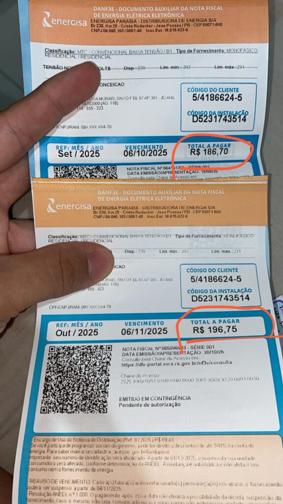 No que diz respeito à Energisa, o caso é ainda pior e as famílias comentam que o valor não condiz com a realidade da comunidade formada por pessoas simples e trabalhadoras que não dispõem de recursos para pagar as contas cada vez maiores. No caso de Jerssyca, os eletroeletrônicos são poucos e simples, onde ela disse que não se justifica pagar em uma única conta o valor de R$ 186,70.