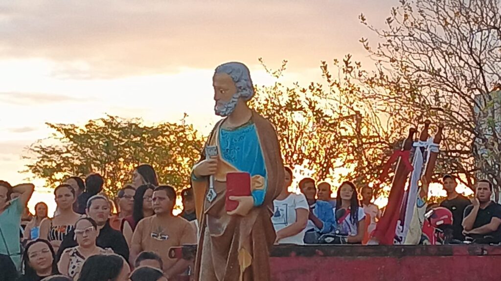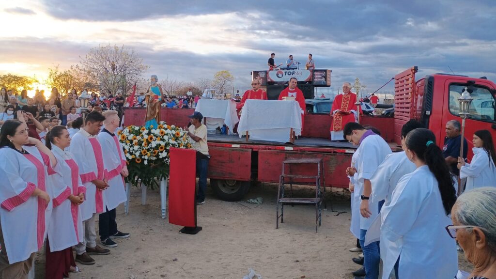 A concentração teve início às 17h, às margens do Açude Jatobá, onde foi realizada a acolhida da imagem de São Pedro, conduzida por pescadores da Colônia Z-40 Joaquim Alves de Aquino em embarcações. Em seguida, a Santa Missa foi celebrada no local, envolvendo a comunidade em um momento de oração, emoção e agradecimento.