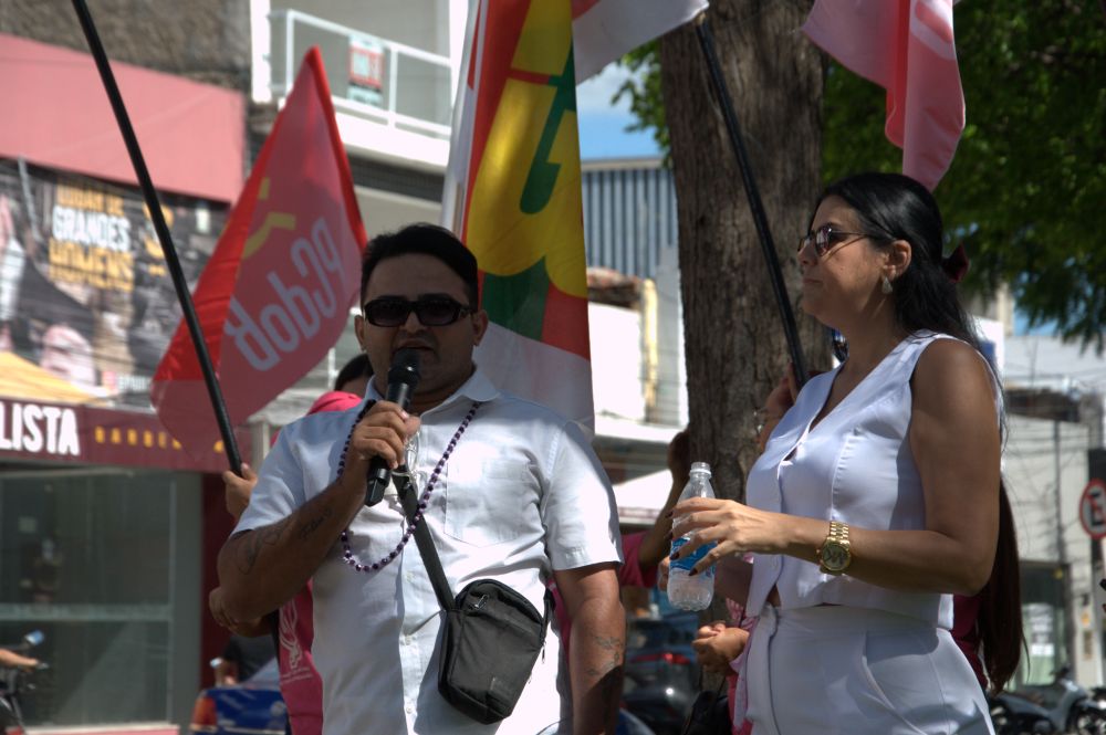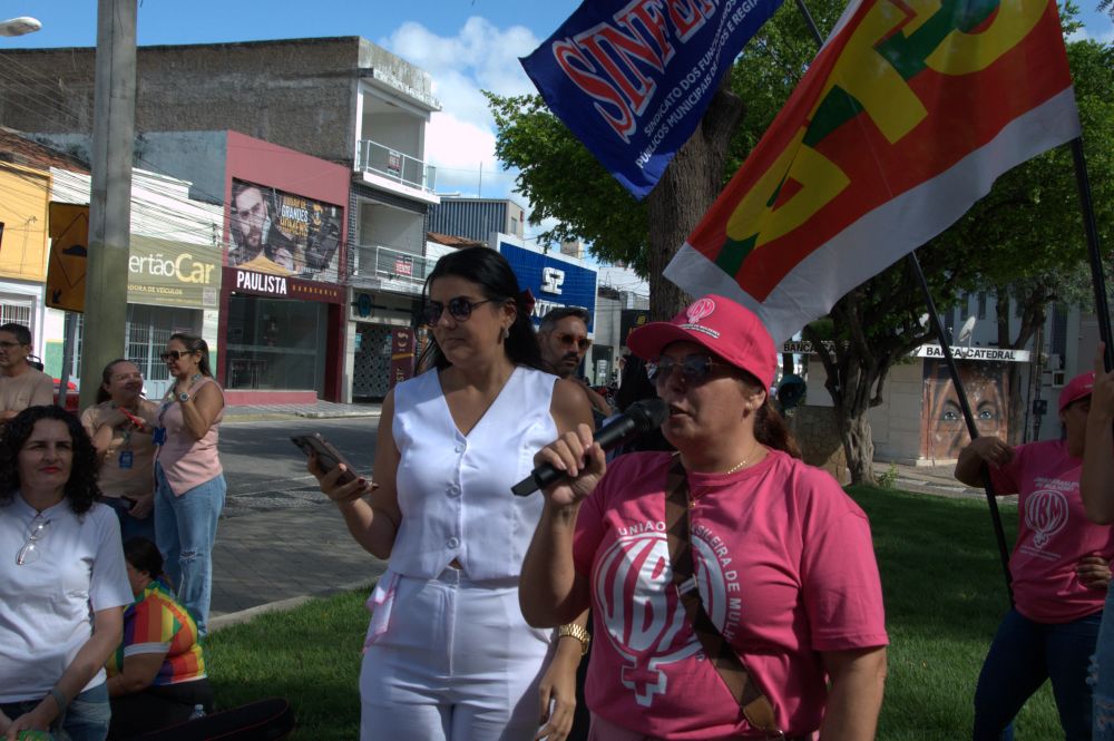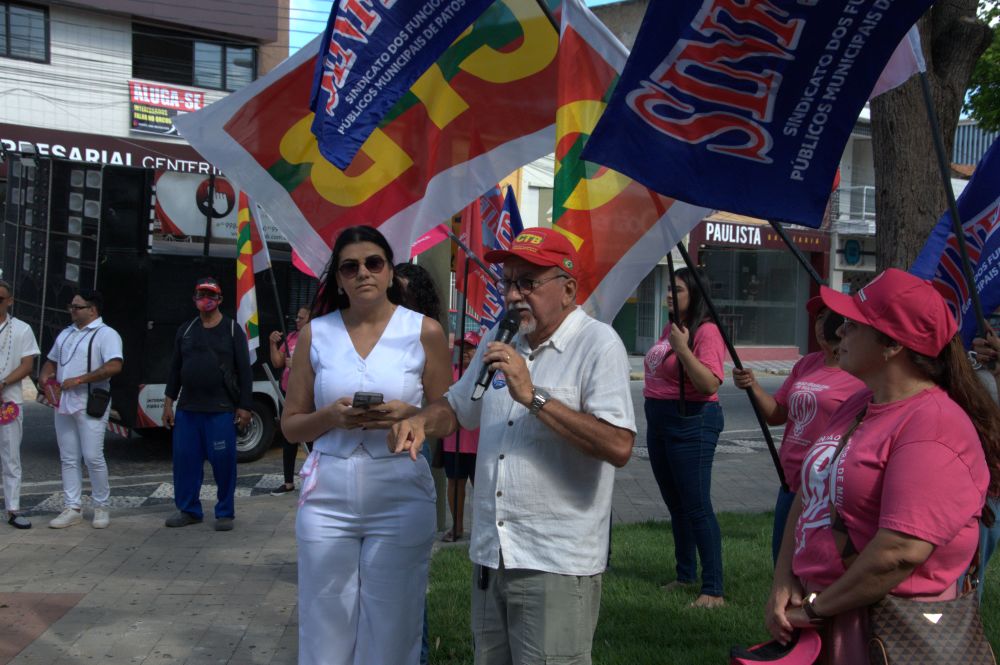 Maria Joseny, a Josa, que é presidente do Conselho Municipal da Pessoa Idosa, fez uma saudação inicial e depois foi seguida de autoridades, entre as quais a representante estadual das delegacias das mulheres, o ex-governador da Paraíba Ricardo Coutinho, a secretária Municipal da Mulher e da Diversidade Humana de Patos, Jéssica Alexandre, Aline Ana, do Movimento de Mulheres Olga Benário, representante estadual da União Brasileira de Mulheres (UBM), representantes da CECABB, da OAB/Patos, SINFEMP, dentre vários outros e outras.