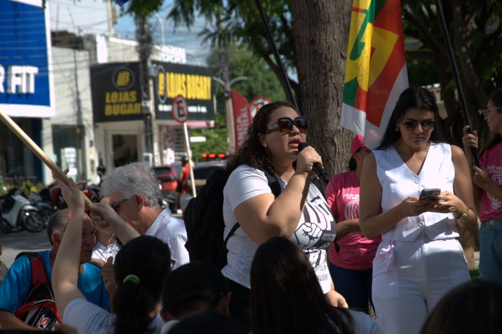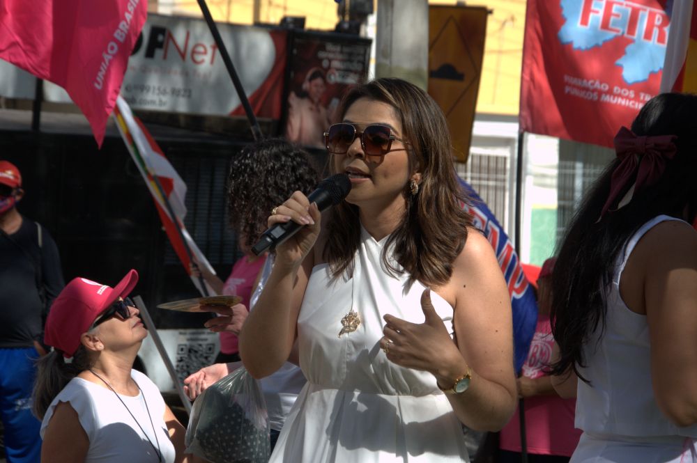 A concentração para o ato se deu na Praça do CEPA a partir das 07h00 e a coordenação ficou a cargo da presidente do Conselho Municipal dos Direitos da Mulher e Diversidade Humana, Samara Oliveira, que fez a abertura do evento e abriu para falas das representações, onde mulheres e homens puderam se expressar.