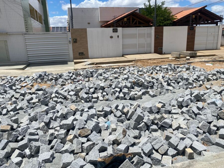 Em Patos, lentidão em obra de calçamento causa revolta e transtornos aos moradores